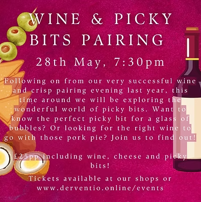 Find out more or book your tickets here: https://www.derventio.online/service-page/wine-and-picky-bits-pairing-evening